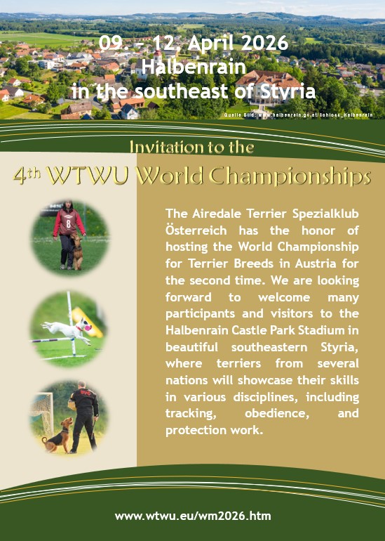 Welcome to the official homepage of the 4th WTWU World Championship 2026 in Austria The Airedale Terrier Spezialklub Österreich team is looking forward to YOU!!!